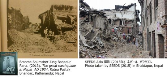 被災地を訪問する中で、私たちは「よりよい復興」の難しさを痛感しました。ネパールは1934年にネパール・ビハール地震(M.8.1)を経験しており、約80年前の災害記録と類似した光景が私たちの目の前に広がっていたからです (添付写真)。過去の教訓は活かされなかったのか、、、私たちは言葉を失いました。