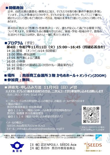 【参加者募集!】 鳥羽市×SEEDS Asia共催 「防災リレー講座」 第4回 開催のご案内