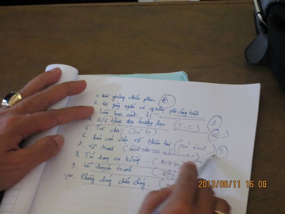 来る7月末から8月初旬にかけ、最後のTOT(教員への研修)が実施されます。今回の対象者は、ダナン市内の残す141校の教職員282名。昨日、実施前のトレーナーへの勉強会が開かれました。参加者は、4名のトレーナー教師を軸に、7地区教育訓練局(BOET)職員、7防災拠点校から教頭および教員の計50名弱。当日は近くに低気圧が来ているということで、6月にしては涼しい中で3時間半がアッという間に過ぎ去りました。嘗て実施した3回のTOT(7拠点校関係教育職員・クアンナム省教育職員・フエ省教育職員)では各校10防災プログラムを取り上げましたが、今回のTOTは夏休みでもありプログラム数を減らしてほしいとの要望があり、結果7~8プログラムが選ばれました。また、TOT実施に際し運営面で協力してくれるBOETは、今回直接教員の話し合いには参加せず、これまでのSEEDS Asiaが実施してきた防災活動の振り返り、および今後の気候変動も取り込んだ防災教育の在り方を討議しました。 今回の勉強会は、学校の状況を考慮したプログラム選択、およびBOETの管理側からの防災教育への取り組み、つまりベトナム側からの積極性が見られたものとなりました。次回勉強会は7月16日です。