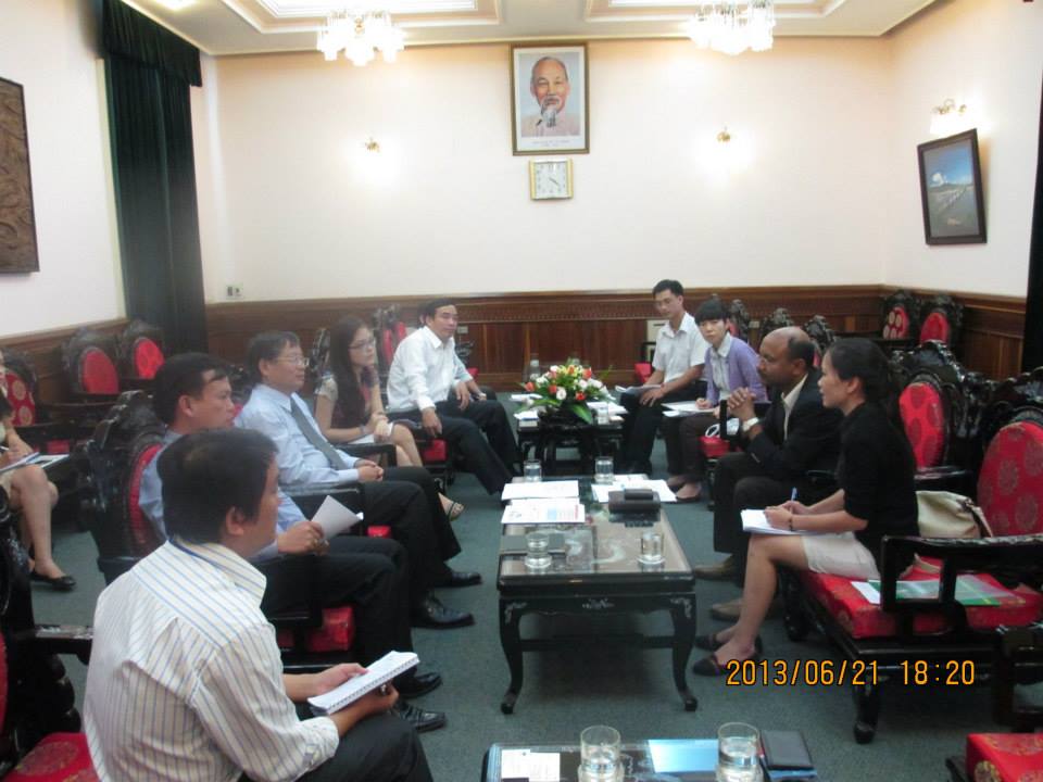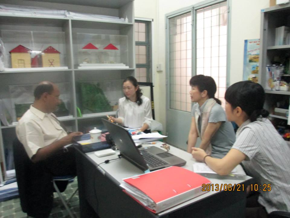 滞在は6月20日夜(木)から22日(土)までの3日間、しかしこの間に大きな仕事が理事長を待ち受けていました。目的は2011年からの2年間ダナンで実施してきた防災教育事業が9月で終了するため、今後の継続をダナン人民委員会側で実施してもらえるように理解してもらうことです。 21日朝8時、シーズの事務所で今までの歩みおよび成果(モジュール・防災モデル・副教材・ゲーム・紙芝居など)を再確認し、9時からダナン市教育局のチン局長と会談に臨みました。1時間の会談を通し、今回の訪問趣旨に対する局長の理解と協力を依頼しました。午後4時、人民委員会での会談開始。人民委員会側からは、Nguyen Ngoc Tuan 副議長他7名、教育局から2名、総計15名の会談となりました。 時間は30分でしたが、人民委員会は防災教育継続への理解を示してくださいました。 この会談の模様はダナンの地元テレビでもニュースで放送されたようです。翌朝、防災教育研修で拘わってきた地区教育局の方から、「昨夜のニュースで、人民委員会での話し合い風景が紹介されていたよ」と教えてくれました。